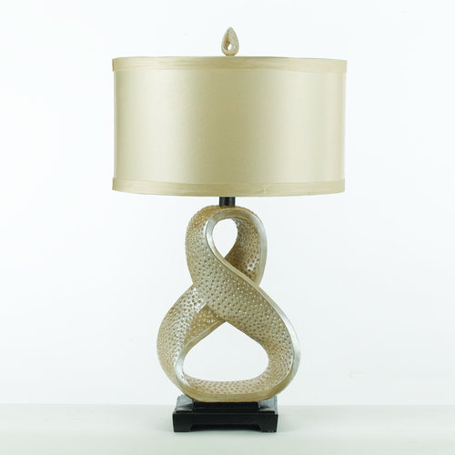 This romantic inspired lamp is made with a pearl twist & a touch of antique silver on a black base.